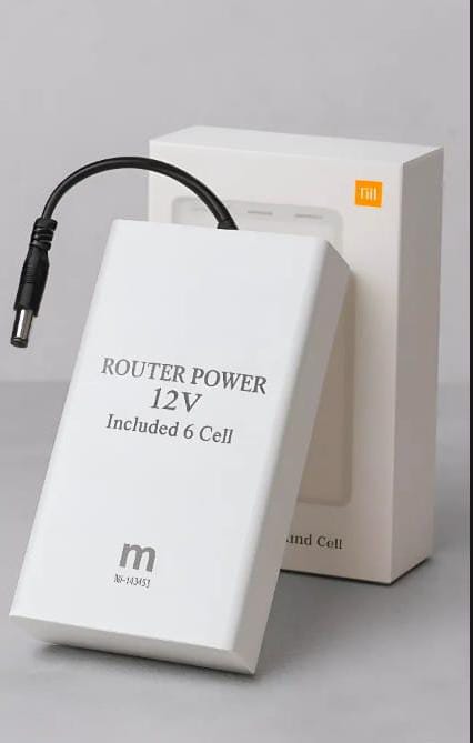 The Router Power Bank 20,000mAh ensures uninterrupted internet connectivity wherever you go. Designed with a 12V high-power output, it delivers stable and reliable power specifically for routers, modems, and other networking devices. With 6-cell battery technology, it provides premium battery life and long-lasting performance for up to 8–10 hours of backup.
